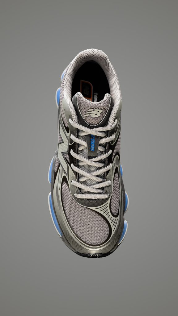 Bovenop zien we luchtige mesh en strakke synthetische overlays.